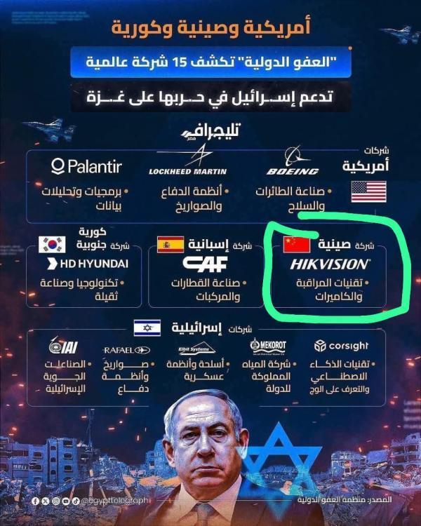 لا نستغرب ان تكون شركة هيكفيجن الاولى عالميا في مجال كاميرات المراقبة CCTV داعمة كبيرة لاسرائيل ..